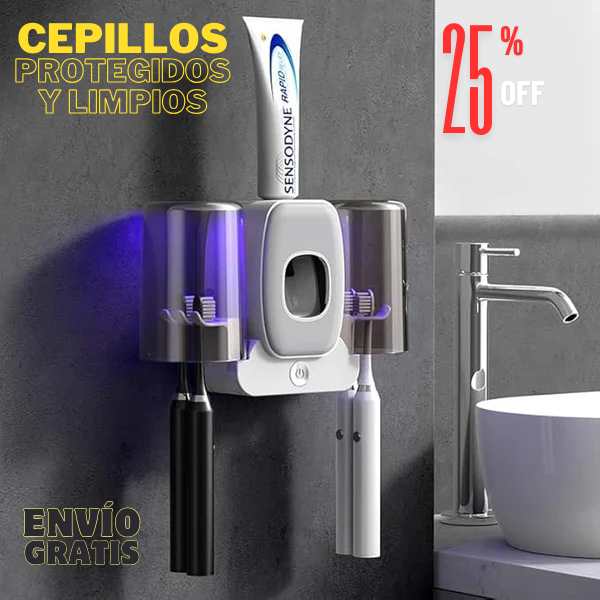 - Incluye: 1 Esterilizador UV, 1 Dispensador de pasta dental, 2 Vasos para enjuague