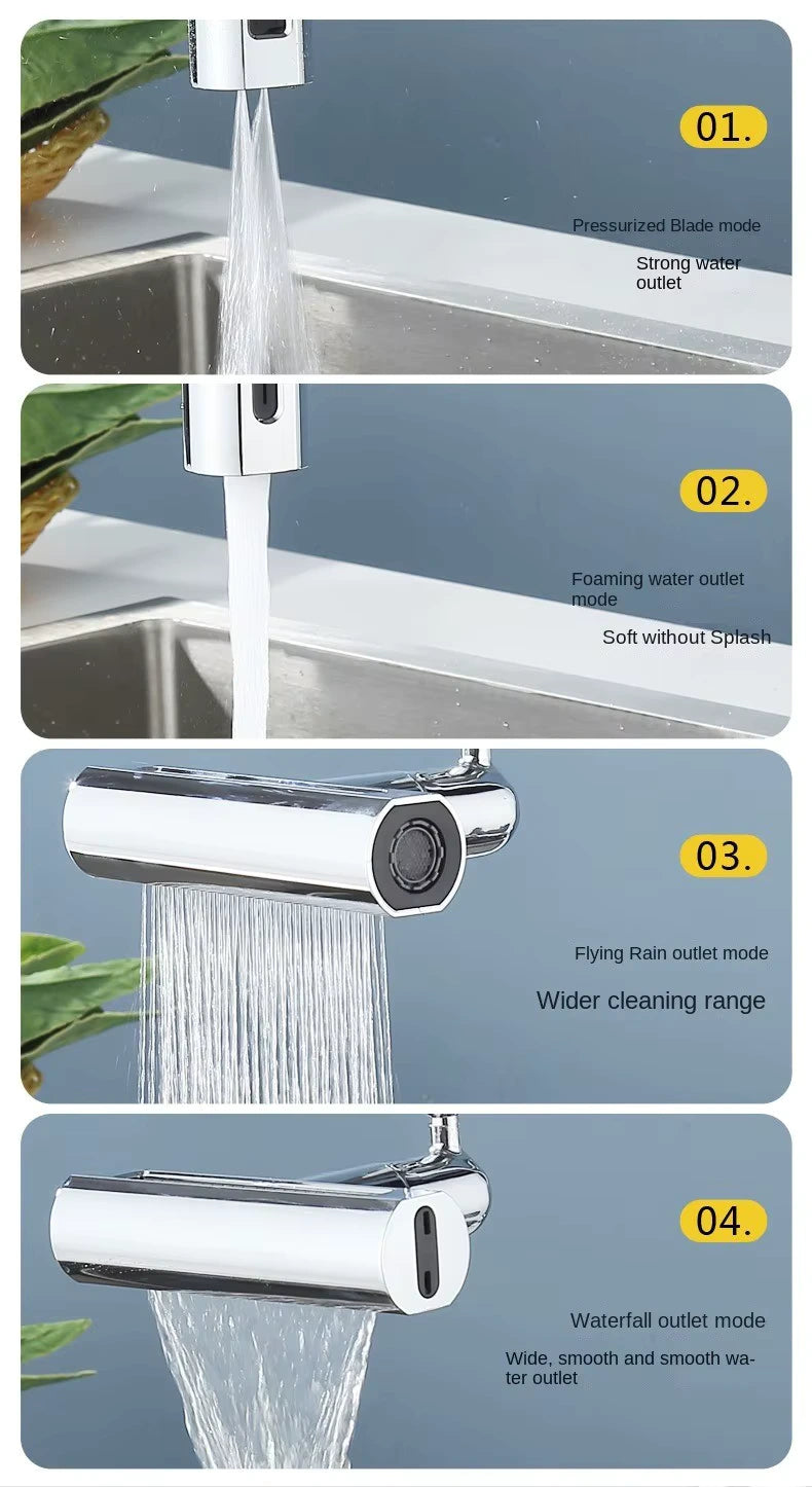"Grifo 4 en 1¡maximiza el ahorro del agua en cada uso!"